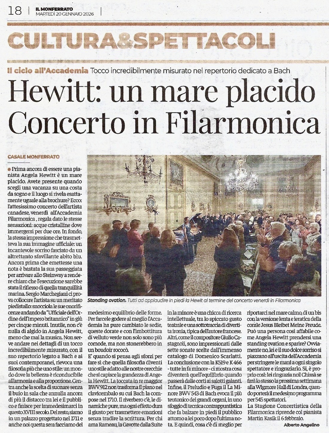Nel 2024, Angela Hewitt ha intrapreso il suo ultimo grande progetto intitolato “The Mozart Odyssey”, che comprende l’esecuzione dell’integrale dei Concerti per pianoforte di Mozart. Questo progetto fa seguito al ciclo “Bach Odyssey” (2016-22), in cui Angela Hewitt ha eseguito l’integrale delle opere per tastiera di Bach nel corso di 12 recital, presentati in tutto il mondo e acclamati dalla critica. Il progetto “The Mozart Odyssey” proseguirà nel corso della stagione 2025/26 con una serie di impegni che si estenderanno a 13 paesi; i momenti salienti della stagione di Angela Hewitt come solista includono collaborazioni con l’Orchestra del Mozarteum di Salisburgo, la Brussels Philharmonic, la Royal Liverpool Philharmonic, l’Orchestra Filarmonica di Varsavia, l’Orchestra Sinfonica Nazionale Estone, l’Orchestra Filarmonica di Tampere, la Fort Worth Symphony Orchestra, l’Orchestre Symphonique de Montréal, la National Arts Center Orchestra di Ottawa, la Toronto Symphony Orchestra, la Vancouver Symphony Orchestra e l’Orchestra Ulster di Belfast, tra le altre.